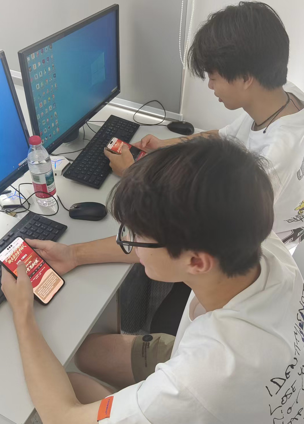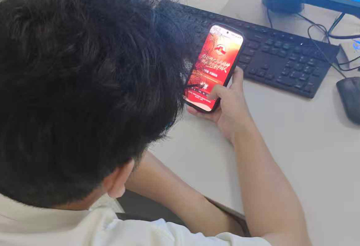 用手机观看同学表示将抗战精神融入设计实践,用珠宝艺术讲好中国故事,让光荣自豪中国人的信念转化为专业学习的动力。