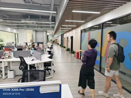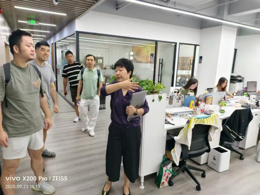座谈结束后,励维品牌营销策划有限公司胡总陪同数媒专业教师们参观了公司的创意策划、艺术设计中心等部门。详细介绍了公司在数字建模、人工智能、虚拟现实等方面的最新技术运用。数媒专业团队对励维的创新实力和行业地位表示高度认可。