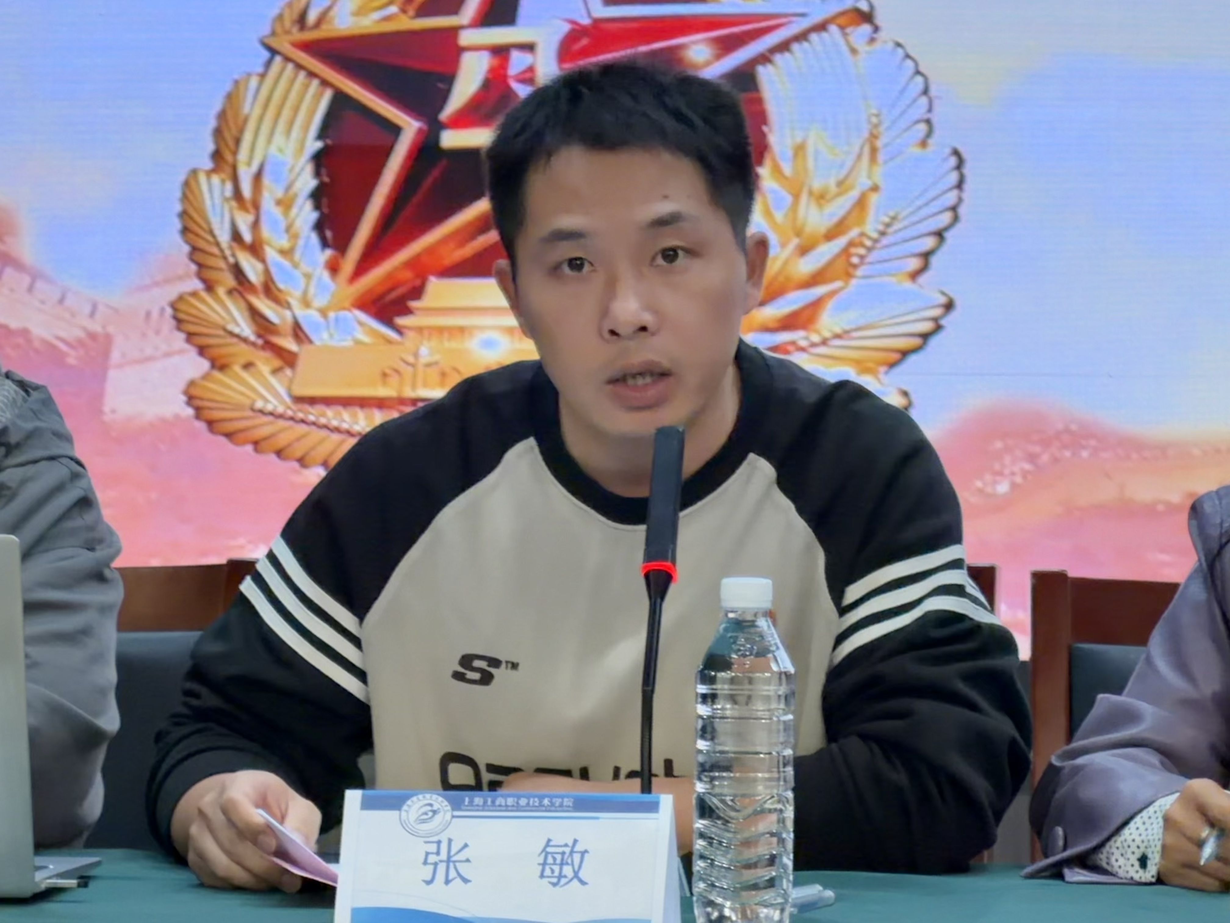 接下来作为预征预储分站学生副站长--宝玉石鉴定与加工241班孙郑伟同学代表学生发言表态。他分享了自己对参军入伍的向往与理解,表示将积极配合分站工作,主动宣传征兵政策,带动身边同学响应国家号召,以实际行动践行青年责任,为国防事业贡献青春力量。