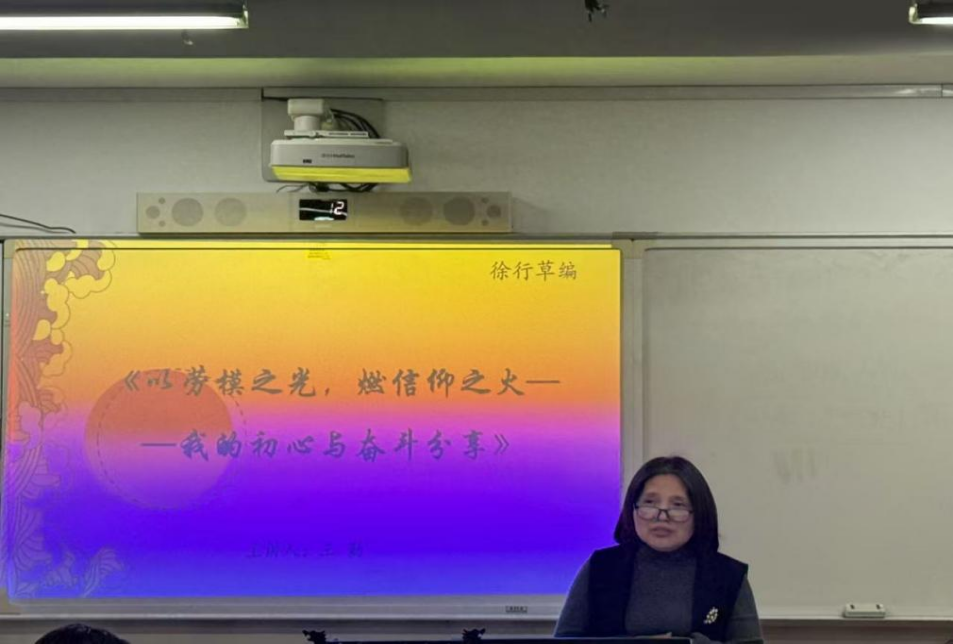 在第二讲授课中,王勤老师以《以劳模之光,燃信仰之火我的初心与奋斗分享》为题,结合自身数十年的草编传承经历,为学员们带来了一堂生动鲜活的党课。作为集上海市“五一”劳动奖章、嘉定工匠、上海市劳动模范等多项荣誉于一身的匠人,王勤老师详细介绍了徐行草编的历史渊源、工艺特点与文化价值,分享了自己坚守非遗传承、创新工艺技法的初心故事。为让学员们更直观地感受匠心之美,她特意带来了荣获第五届非物质文化遗产博览会传统技艺比赛草柳藤编组第二名的作品《花开富贵》进行现场展示。 从选材、编织到造型设计,作品每一个精妙的细节都彰显着精益求精的工匠精神,引发了学员们的浓厚兴趣与阵阵赞叹。