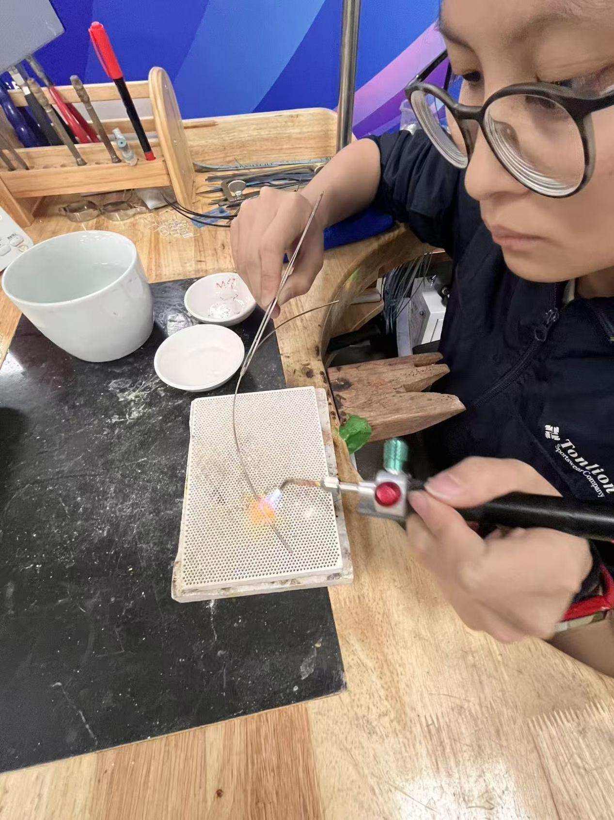 比赛历时三小时,参赛选手需在规定时间内独立完成一件贵金属饰品的制作任务。考核内容涵盖锯切、锉修、焊接、塑形、表面处理等核心加工技能,同时重点考察学生对设计图纸的理解与还原能力、作品比例与结构的精准把控、操作流程的规范性以及时间管理效率。此外,评委还关注选手在材料使用上的合理性与节约意识,强调贵金属加工过程中必须遵循的安全规范与环保要求,全面检验其职业素养与工匠精神。为确保评审工作的专业性与公正性,本次大赛评奖工作由曾执裁过世赛珠宝加工赛项的教师依据统一评分细则进行打分,并结合相似度、表面处理、焊接、尺寸等多个维度综合评定成绩。