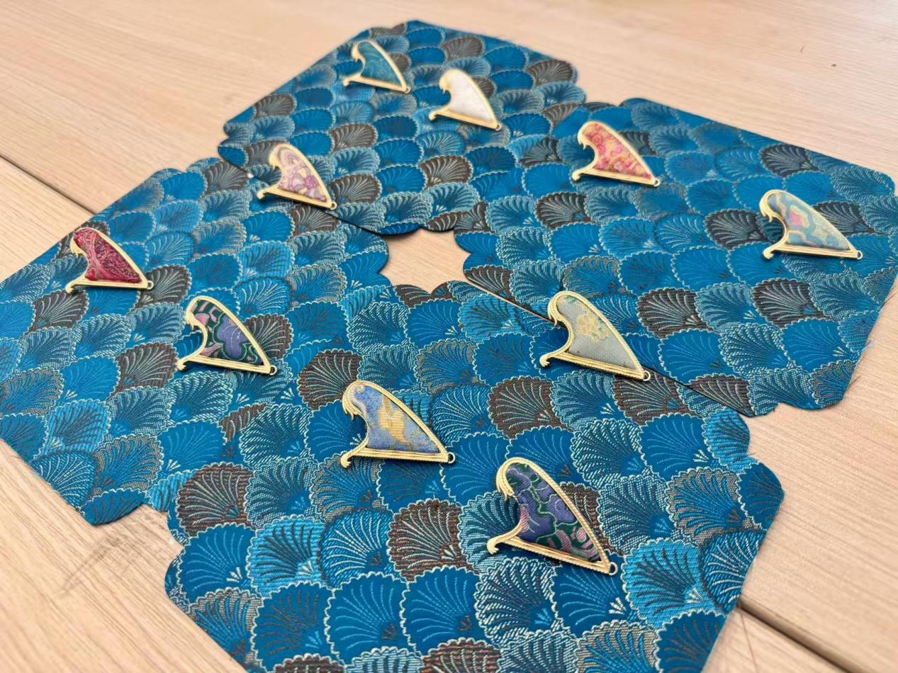 手作实践环节成为职业兴趣探索的关键载体。肖瑶老师详细讲解宋锦夹子的制作工艺,从纹样设计、面料裁剪到手工缝制,每个步骤都对应职业能力素养进行解读。“纹样设计考验创新思维,缝制过程锤炼专注力,这些都是首饰专业不可或缺的‘超能力’。”她边示范边引导学生思考自身优势。学生们分组协作,在实践中交流设计理念,分析自身在创意、动手、沟通等方面的特长,逐步明晰职业兴趣方向。